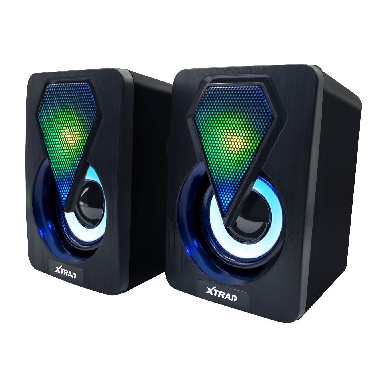 Caixa de som estéreo PC, P2 + USB, 3W RMS x 2 com LED