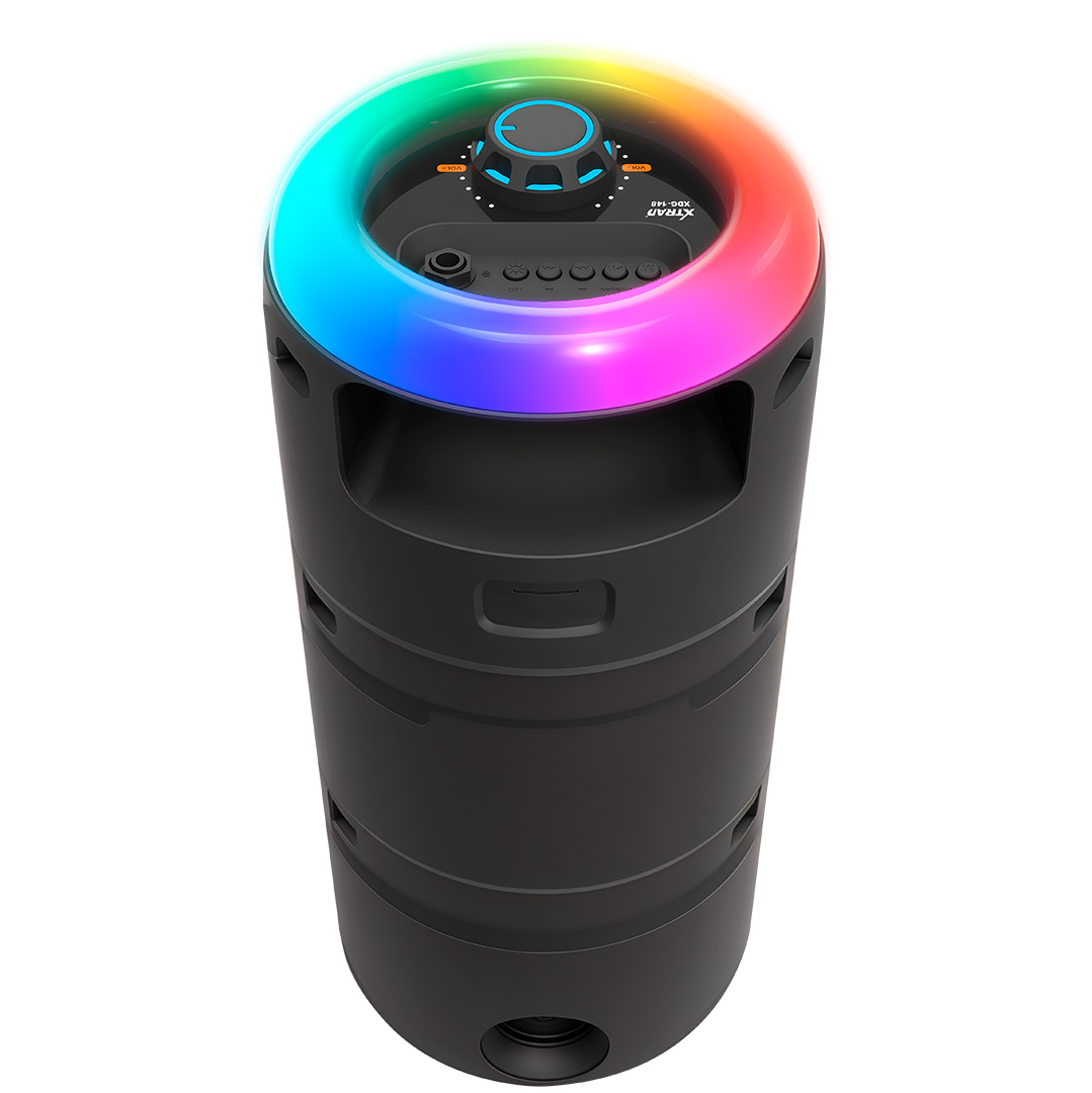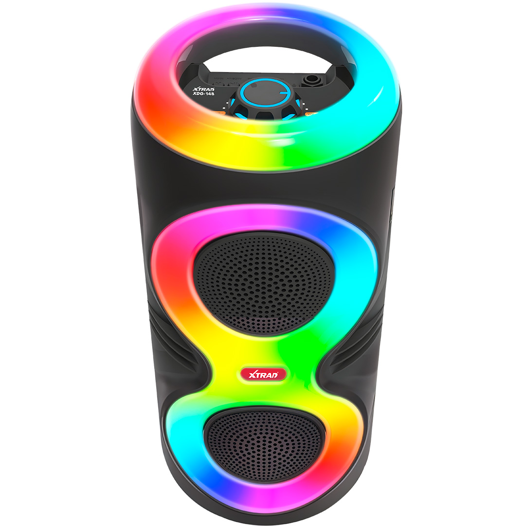 50 W, 1.500mAh, 4″ x2, Bluetooth, rádio FM, USB, microfone e TWS.