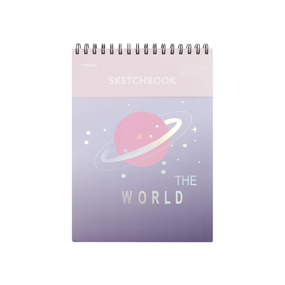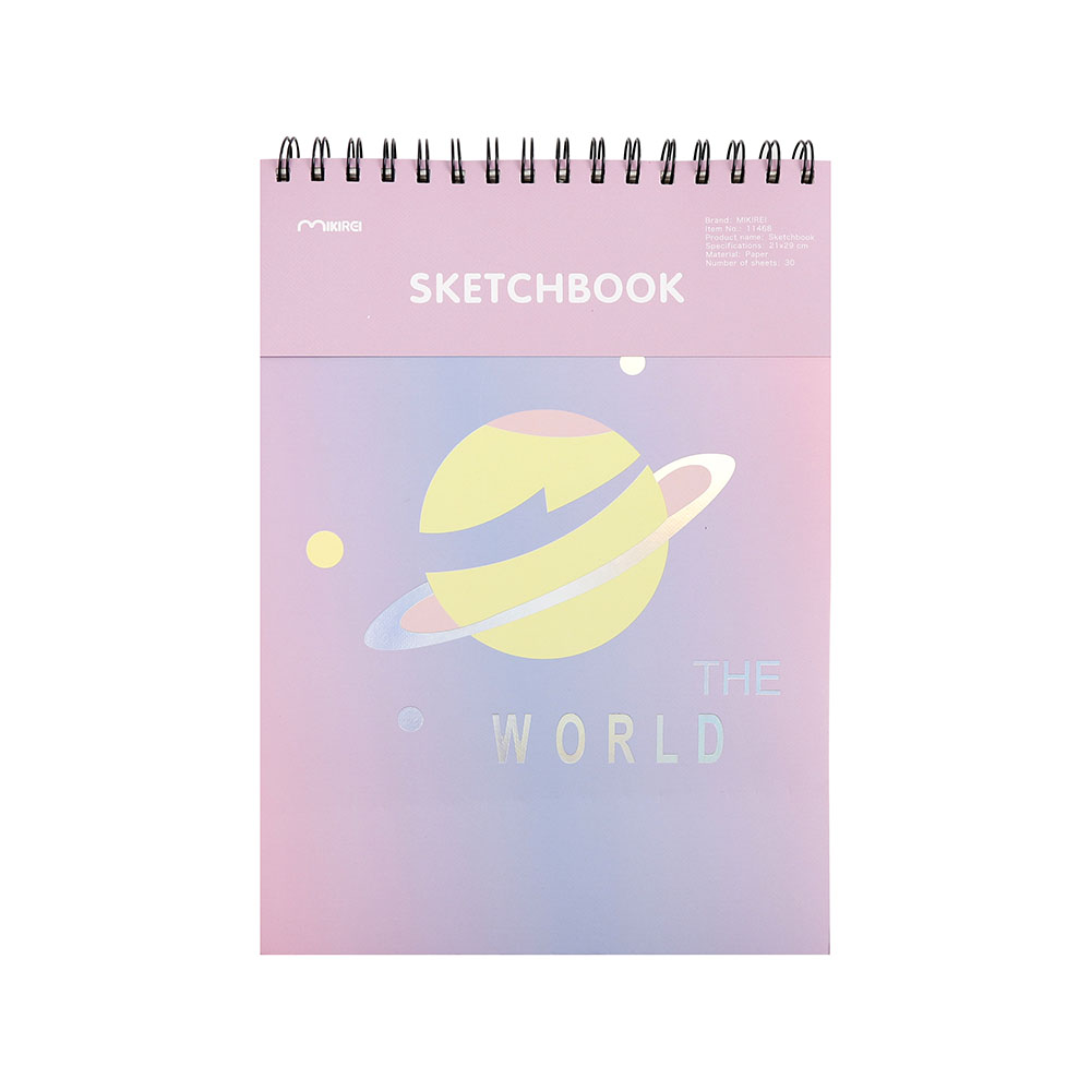 Tamanho 29×21. Caderno Sketchbook Espiral com gancho, capa 300g com detalhe Hot stamping, 30 folhas de esboço 130g, folha de destacaveis, contra capa mdf 2mm.