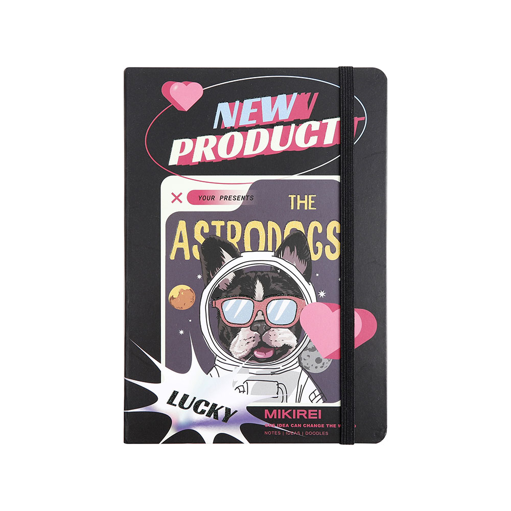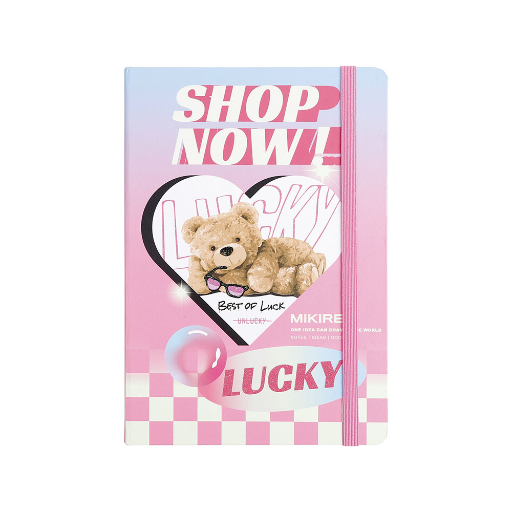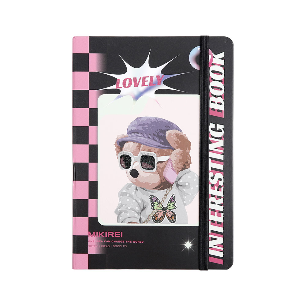 Tamanho 21×14.5. Caderno com pauta, capa dura glitter texturizado com elastico, 96 folhas de 80g, com marcador de pagina em fita.