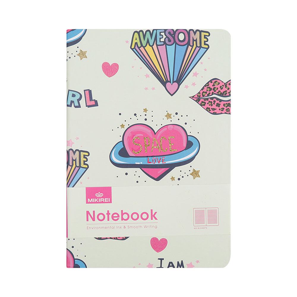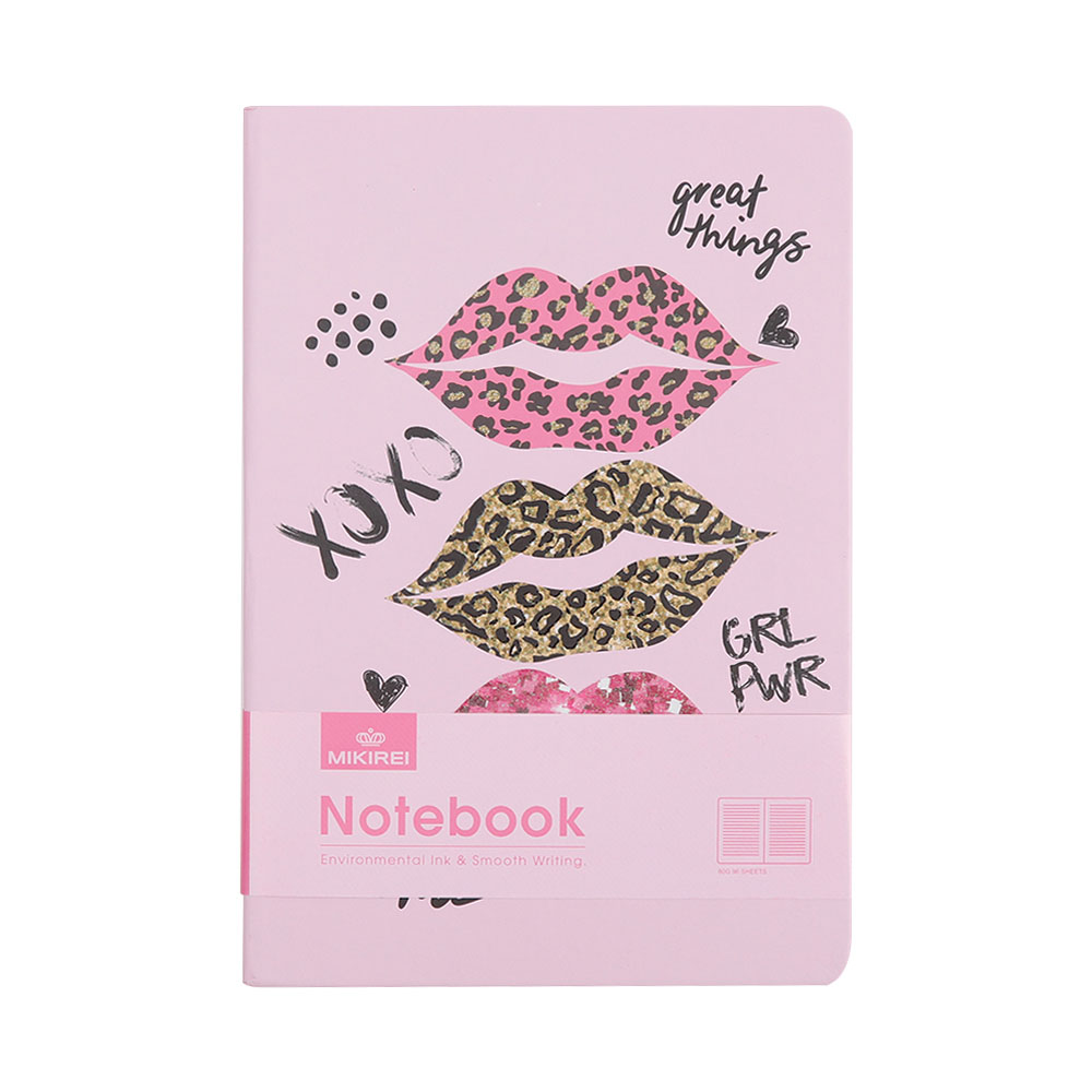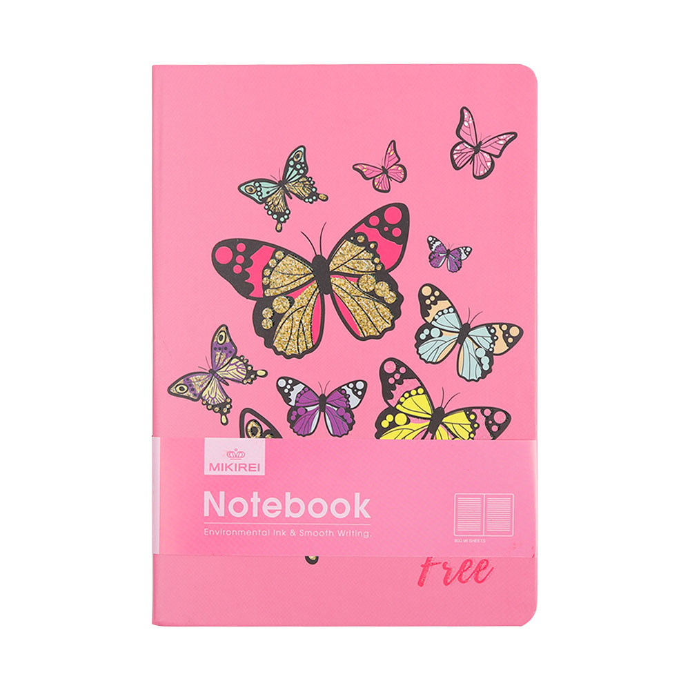 Tamanho 21×14.5. Caderno com pauta, capa dura glitter texturizado, 96 folhas de 80g, com marcador de pagina em fita.