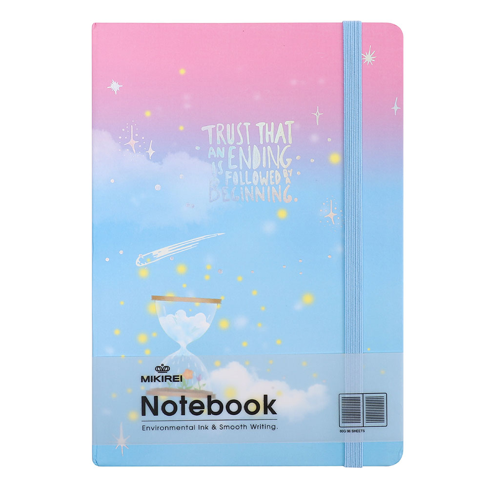 Tamanho 10.5×7.5. Caderno com pauta com elastico, capa dura com detalhe Hot stamping, 96 folhas com 80g