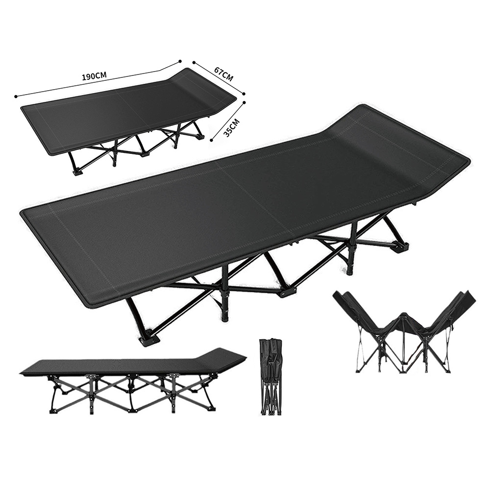 Cama feita com tecido oxford em camada única e tubos em ferro.