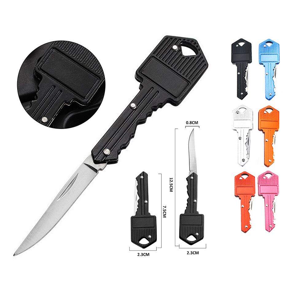 Mini faca dobrável em forma de chave.